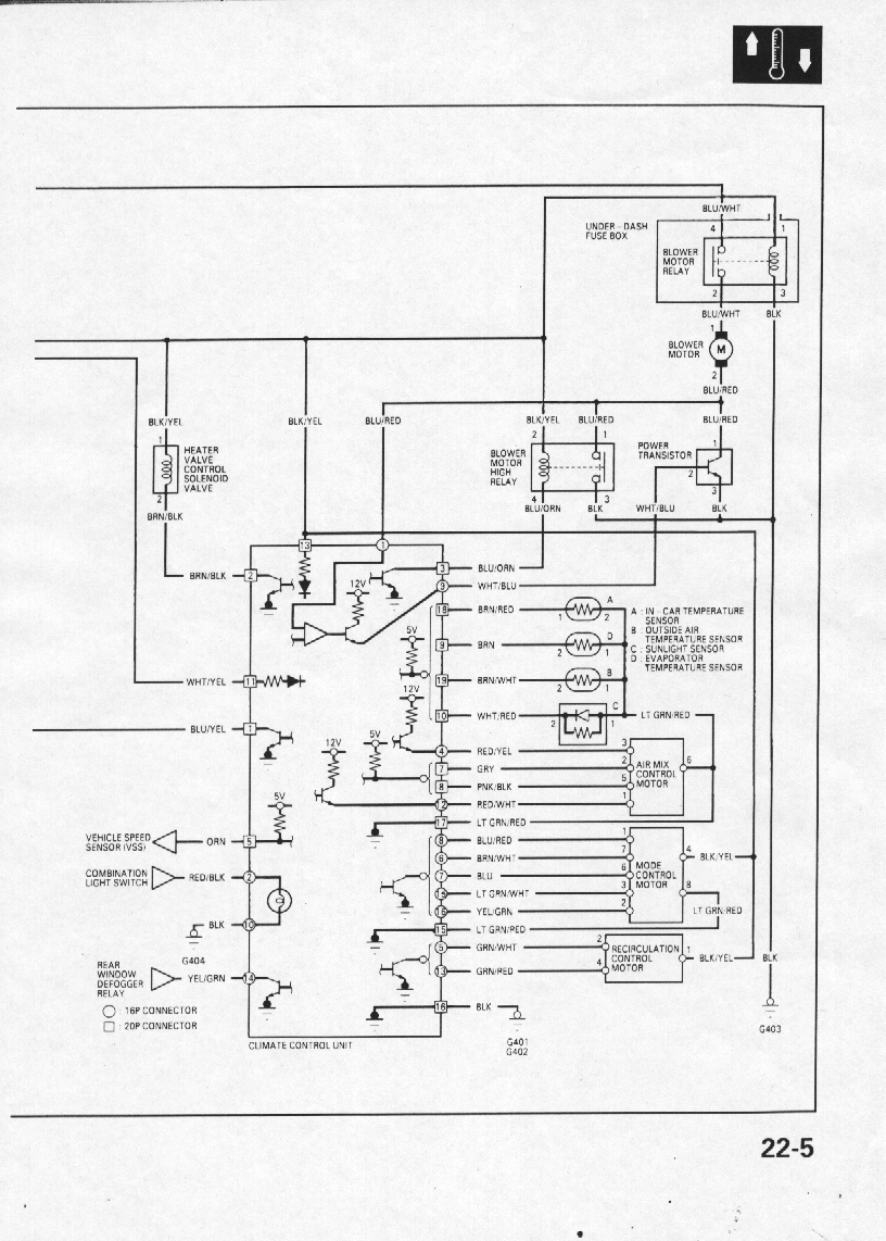 The In-car Temperature Sensor is the No. 5 on this picture, the Outside Air Temperature Sensor is No. 4 and the Sunlight Sensor is No. 2. The Evaporator Sensor is No. 19 on this picture. For the Power Transistor, I used one from a 1st gen Acura CL. It’s part number is 79330-SF1-941. For the Blower